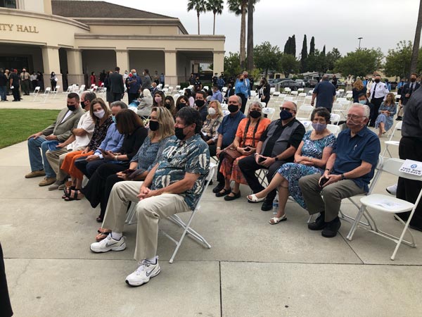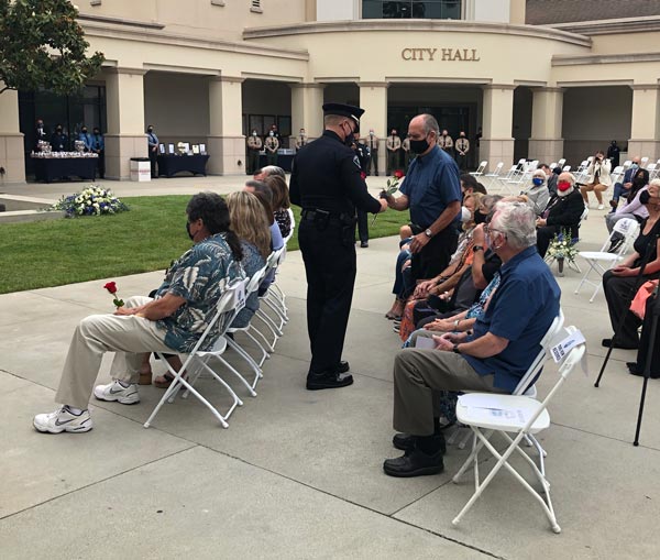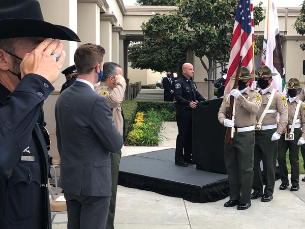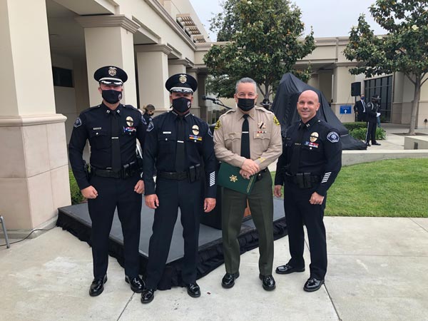 Sheriff Alex Villanueva, who attended the ceremony, started his speech by thanking Buena Park Police Chief Corey S. Sianez, distinguished guests and the families of the fallen Police Officers in the audience. “It’s a touching tribute to the sacrifice of each and everyone one of them (fallen officers) and of you the families,” he said. “First and foremost you will always be in our thoughts and prayers; it’s a tribute we will never forget. Everything we do is a testament to their sacrifice and everyone here standing in uniform, everyone doing the job runs the risk of losing their life. It’s a testament of just the difficulties of the job and the times we live in.”