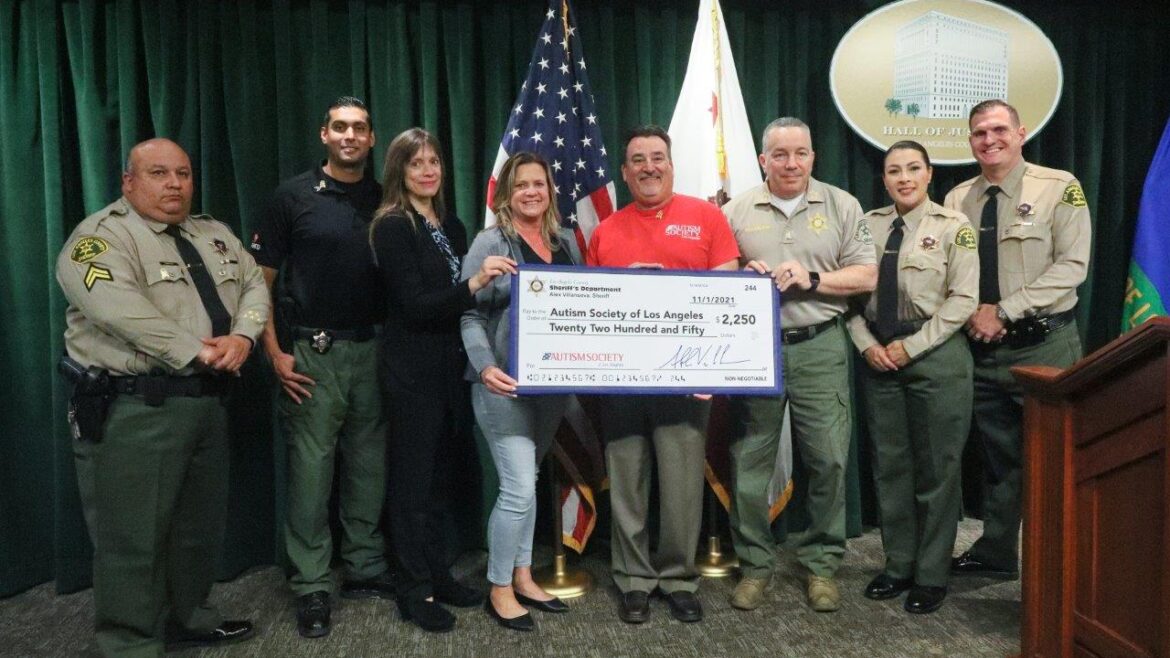 Sheriff Alex Villanueva announces special alert form and presents check to Autism Society of Los Angeles