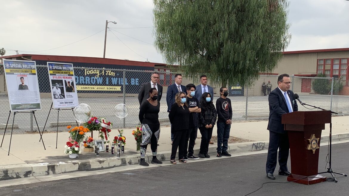 On Tuesday, September 28, 2021, Homicide Bureau detectives held a press conference in front of a makeshift memorial where Estephan Hernandez was murdered exactly four years ago. Lieutenant Brandon Dean announced a $10,000 reward in exchange for information leading to the arrest and conviction of those responsible for taking the life of Estephan. The reward is sponsored by the Los Angeles County Board of Supervisors.